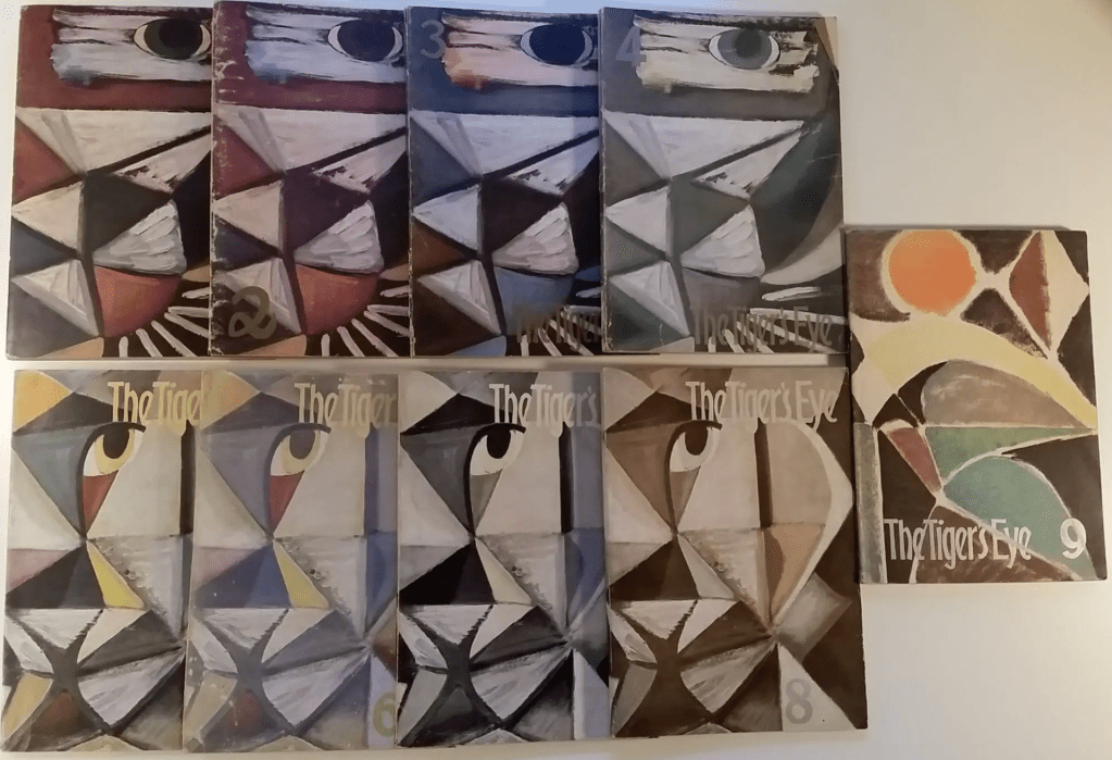 This is a current obsession i’ve found myself involved with. I came across this old publication while sifting through the stacks in the downtown library. This book I picked up was relatively recent (2002) entitled The Tiger’s Eye: The Art of a Magazine, it presents an overview of the art and literature displayed in the magazines run from 1947-1949. Artists like Picasso and Rothko were a part of the same scene as the creators John and Ruth Stephan and became enmeshed in the exciting post war global art happening in New York City.